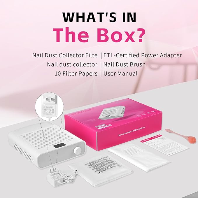 - Comfort Meets Performance – Built-In Armrest & Brushless Power:Enjoy quieter, stronger performance with our turbo brushless nail dust collector, designed to minimize noise while maximizing suction. The plush, ergonomic armrest provides added comfort and wrist support, turning any table into a professional nail workstation—perfect for both salon setups and home studios