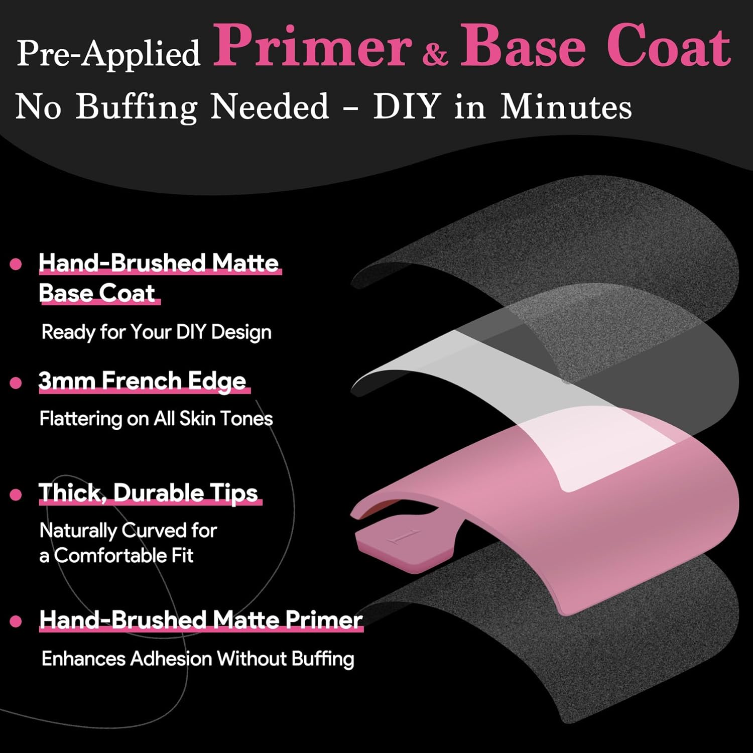 - Pre-Coated with Primer & Matte Base: Instant Art-Ready, each toenail press ons tip comes with hand-applied primer and base coat, ready for design. No buffing needed! The matte finish allows easy DIYโpaint, decorate, or add rhinestones, get a salon-quality DIY pedicure in just 10 minutes, even if you're a beginner!