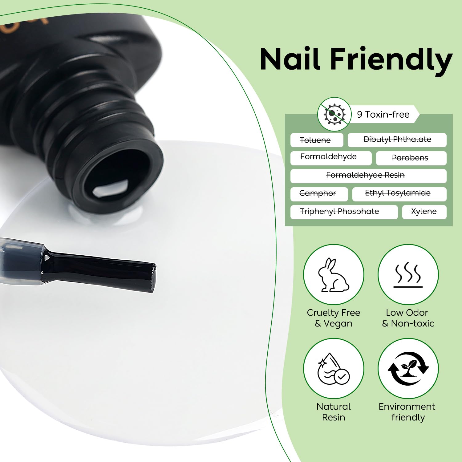 - The Gel Base ensures a smooth, even application while the Top Coat provides a high-gloss finish, protecting your nails from chipping and peeling.