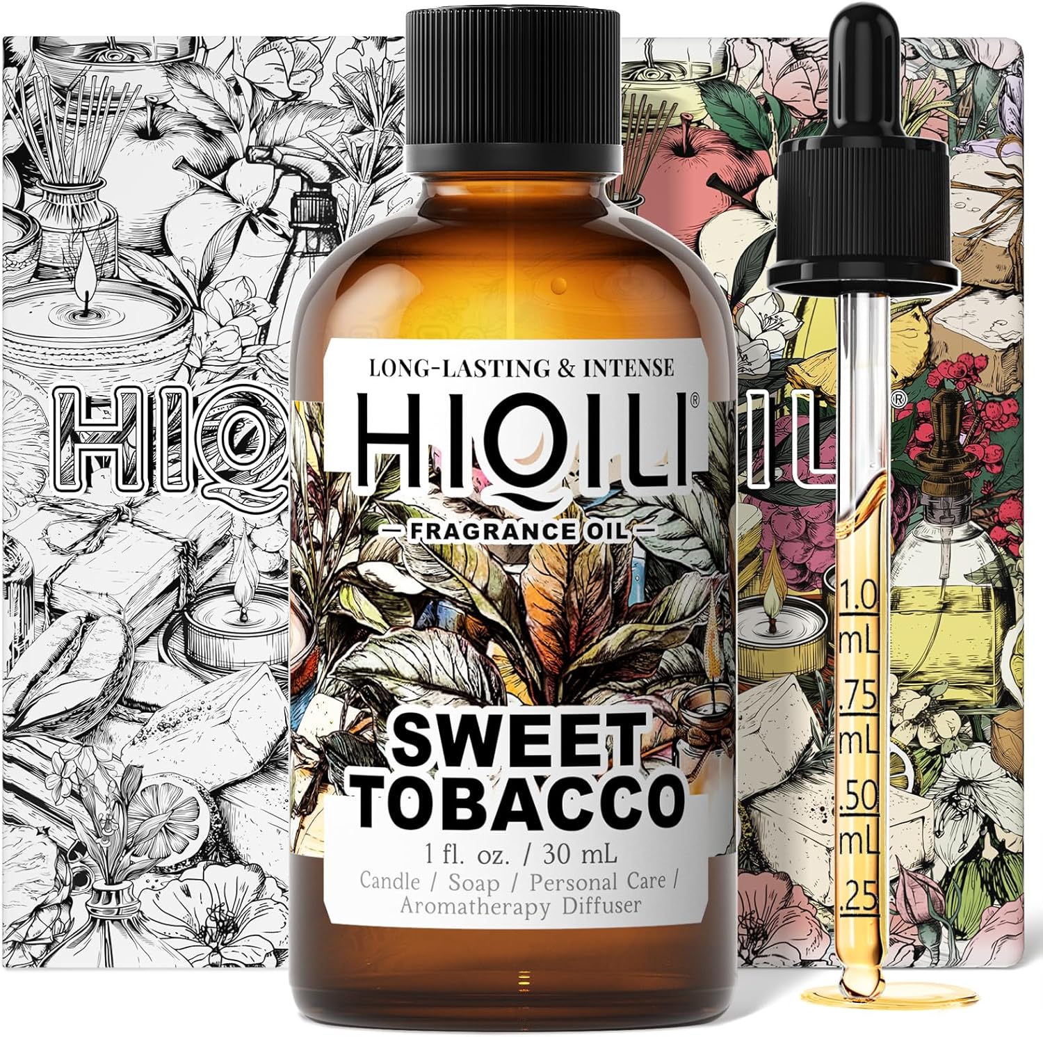 HIQILI Sweet Tobacco Fragrance Oil for Home Essential Oil Diffuser, Candle, Soap, Perfume & Body Scrubs Making, Rich Scent - 1 Fl Oz
