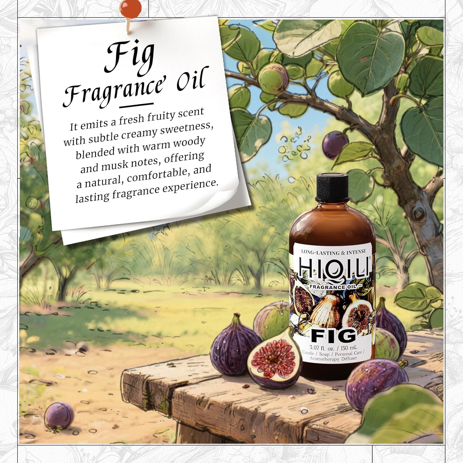 HIQILI Fig Fragrance Oil for Hotel Scent Diffuser, Candle & Soap Making Kit, Add to Skin Care, Bath & Body Products - 5.07 Fl Oz